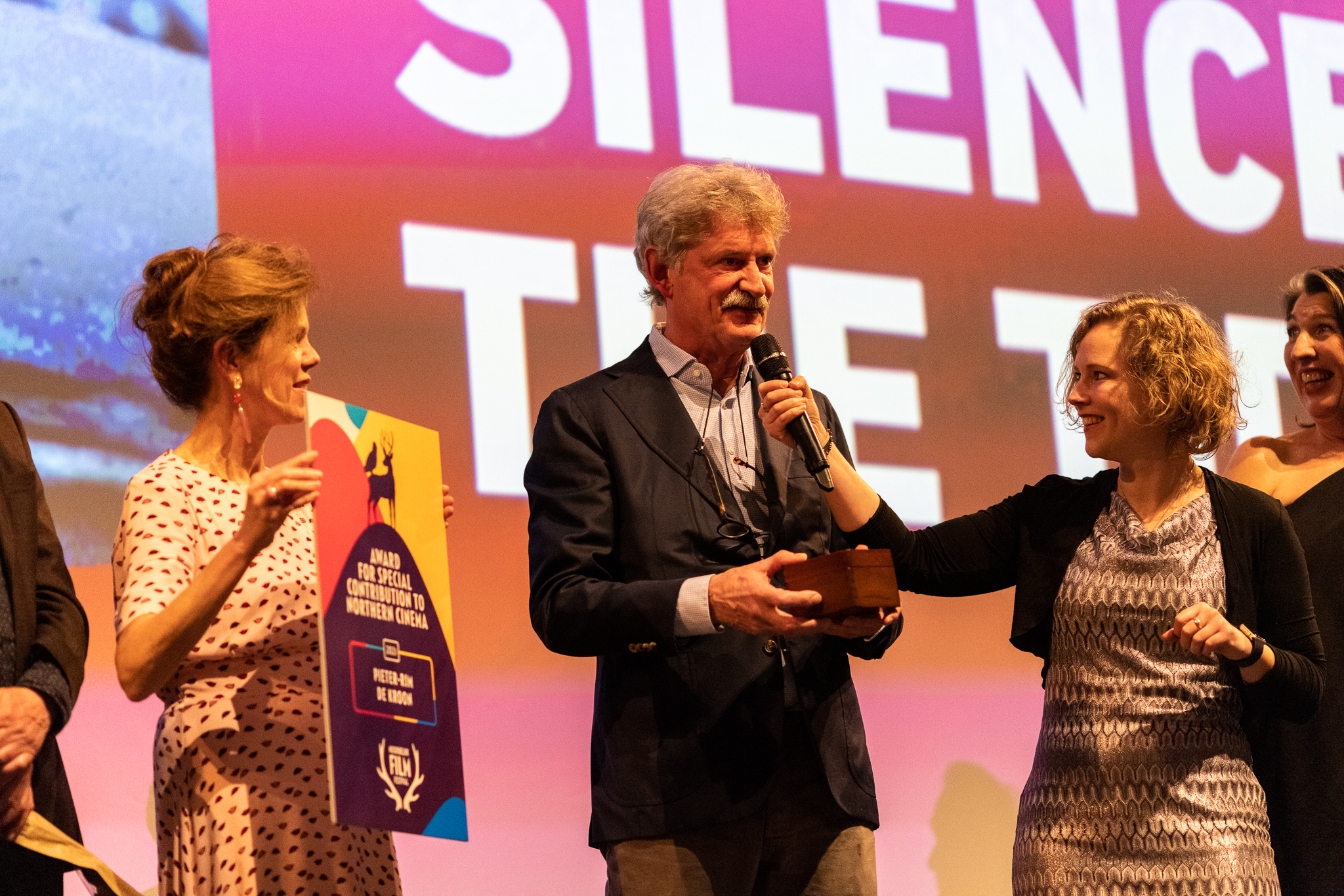 Na zes keer uitstel, ging Silence of the Tides op de openingsavond van het Noordelijk Film Festival eindelijk in première. De documentaire maakte zichtbaar en hoorbaar indruk op het publiek. Regisseur Pieter-Rim de Kroon voelde tevens dat de film binnenkwam. De Award for Special Contribution to Northern Cinema maakte de avond compleet. “Dit ontroert me, echt fantastisch,” aldus De Kroon.