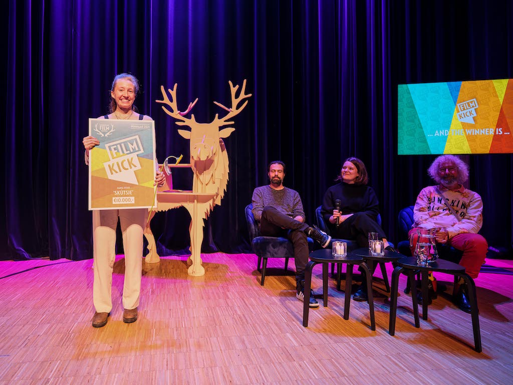 De Filmkick Competitie is zondagmiddag op het Noordelijk Film Festival gewonnen door Maria Stuut met haar plan voor de korte film Skûtsje. Zij is van plan een creatieve korte documentaire te maken over een kleine platbodem die over het wad vaart. Terwijl het water langzaam maar zeker onder haar vandaan stroomt, zijn de verhalen van een zeemeeuw en een jutter hoorbaar. Stuut ontvangt 10.000,- euro om Skûtsje te realiseren. De uitreiking van de Filmkick Competitie ging samen met de uitreiking van de Noorderkroon Awards.